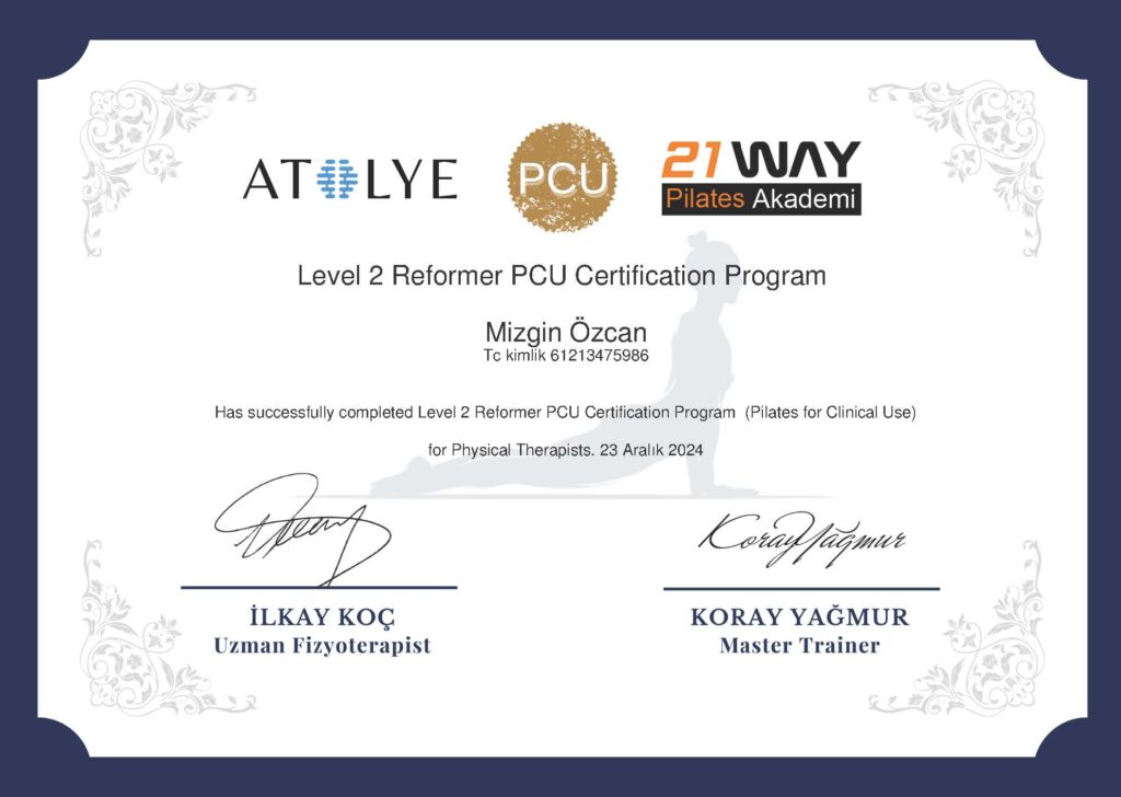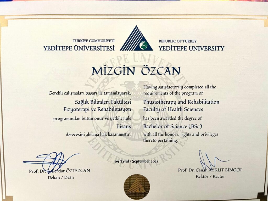 1999 yılında İzmir’de doğdum. İlk, orta ve lise eğitimimi İzmir’de tamamladım. Lisans eğitimimi 2021 yılında Yeditepe Üniversitesi Sağlık Bilimleri Fakültesi Fizyoterapi ve Rehabilitasyon Bölümü’nden  mezun olarak tamamladım. Lisans  eğitimimi bitirdikten sonra 21-Way Pilates Akademi ve Atölye’nin PCU Fizyoterapistlere özel Pilates eğitmenlik programına, Manuel Terapi Atölye’sine ve IKN Approach Level 1 eğitimine katıldım. Skolyoza özel bir yaklaşım olarak, Uluslararası geçerliliği olan ISST Schroth Method (Almanya) eğitimini tamamladım.2024 yılı itibariyle Fizyospine bünyesinde çalışmaktayım.