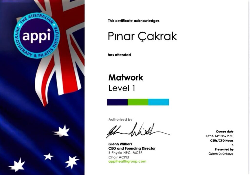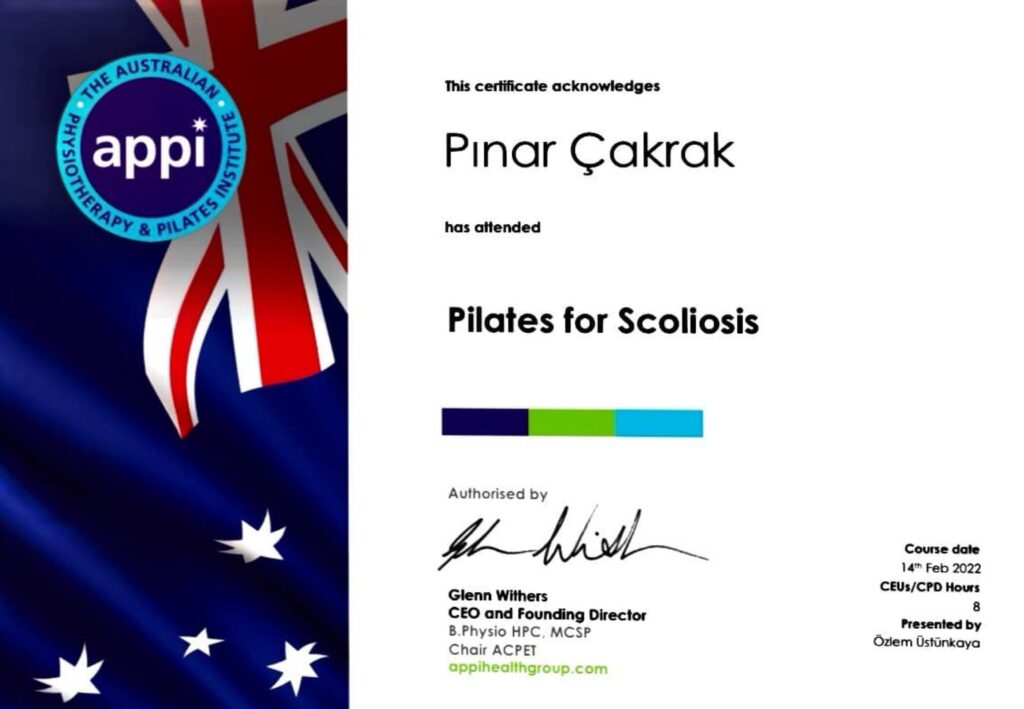 Mezuniyet sonrası fizyoterapistlere özel olarak düzenlenen APPI Matwork ve Skolyozda Pilates eğitimlerini aldım.