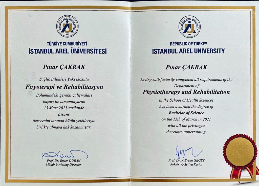 1997 İzmir doğumluyum. İlk, orta ve lise eğitimimi İzmir’de tamamladım. İstanbul Arel Üniversitesi Sağlık Bilimleri Fakültesi Fizyoterapi ve Rehabilitasyon Bölümünden 2021 yılında Fizyoterapist olarak mezun oldum.